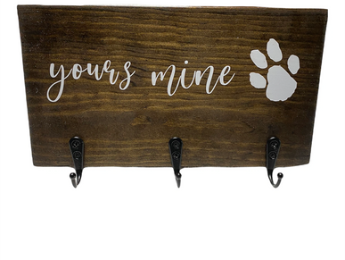 Handmade of quality wood, the Yours Mine Paw Print Leash Rack is the perfect addition to your home.