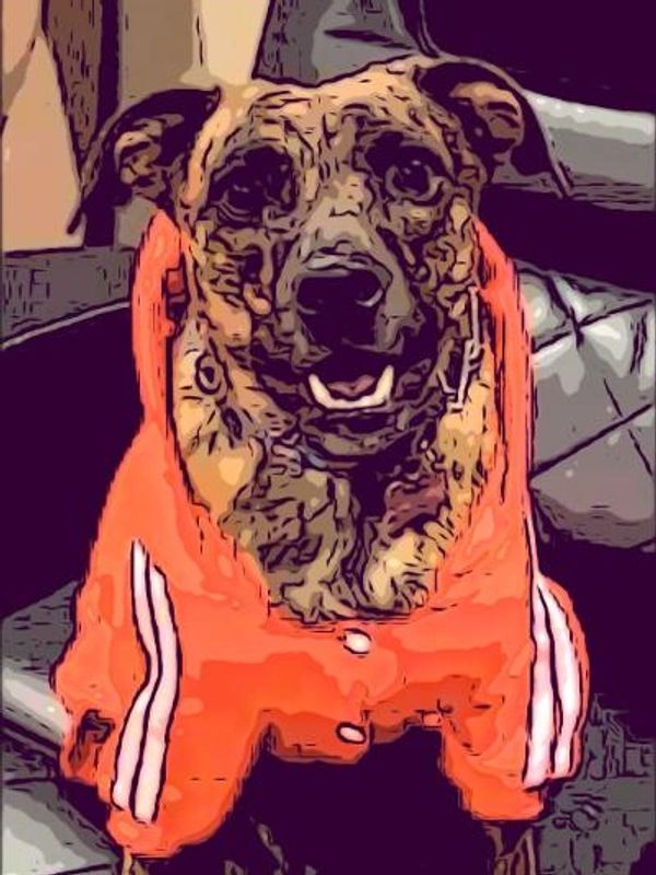 Oliver is a Pit Bull. One look at him and you can see he is the sweetest dog!!! Oliver was yet another dog that came into our family as a complete Foster Fail!!!! Oliver has a true heart of gold. He only asks for your love and attention! He is also a fearless protector!! Every day is a good day for Oliver! One look at him and all you can do is smile! Oliver's favorite treat is Chicken Hearts!!